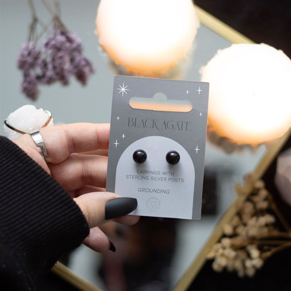 This pair of black agate crystal stud earrings comes on a matching backing card and makes a meaningful gift for those in need of spiritual protection. Black agate is a powerful semi-precious stone believed to create harmony and calm dark forces, making it ideal for grounding on protection.