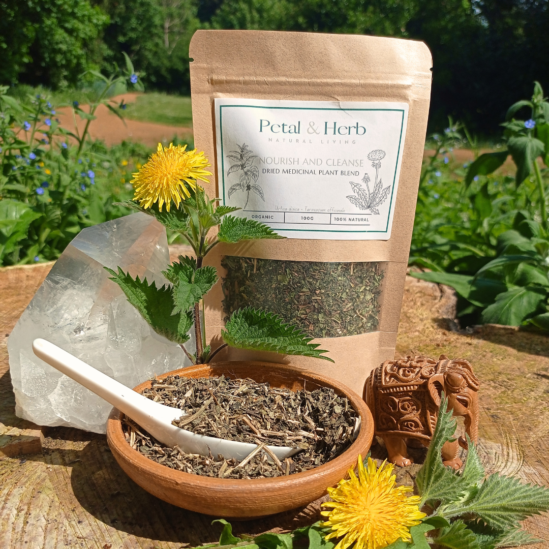 At Petal and Herb, we believe in the wisdom of simplicity—drawing on nature’s most trusted allies to support the body’s natural rhythms. Our Nourish and Cleanse blend brings together two time-honoured herbs: nettle and dandelion, united in a fresh, mineral-rich infusion designed to gently cleanse while deeply nourishing from within.