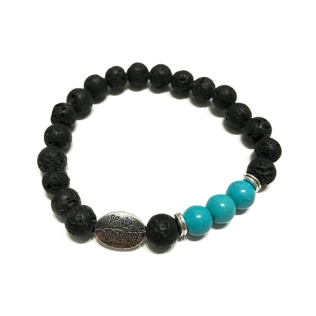 Discover tranquility and style with this Lava Stone Bracelet - Leaf Turquoise. Featuring the grounding properties of natural lava stones paired with the soothing, vibrant hues of a leaf-shaped turquoise charm, this bracelet promotes emotional balance and calm.