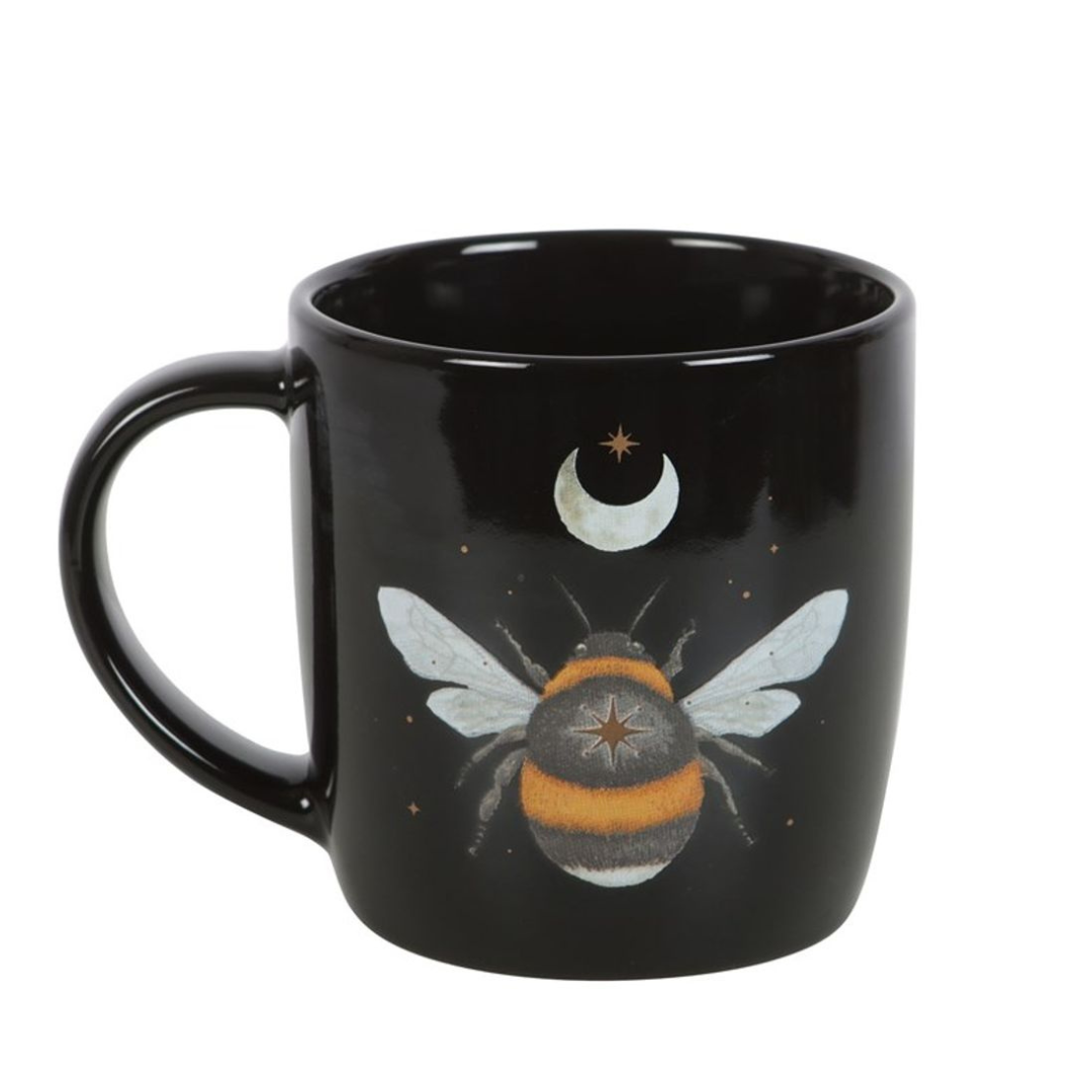 Add a touch of enchantment to your morning cuppa with our Forest Bee Mug. This black ceramic mug showcases a captivating and intricate forest bee design, adorned with a crescent moon and stars.