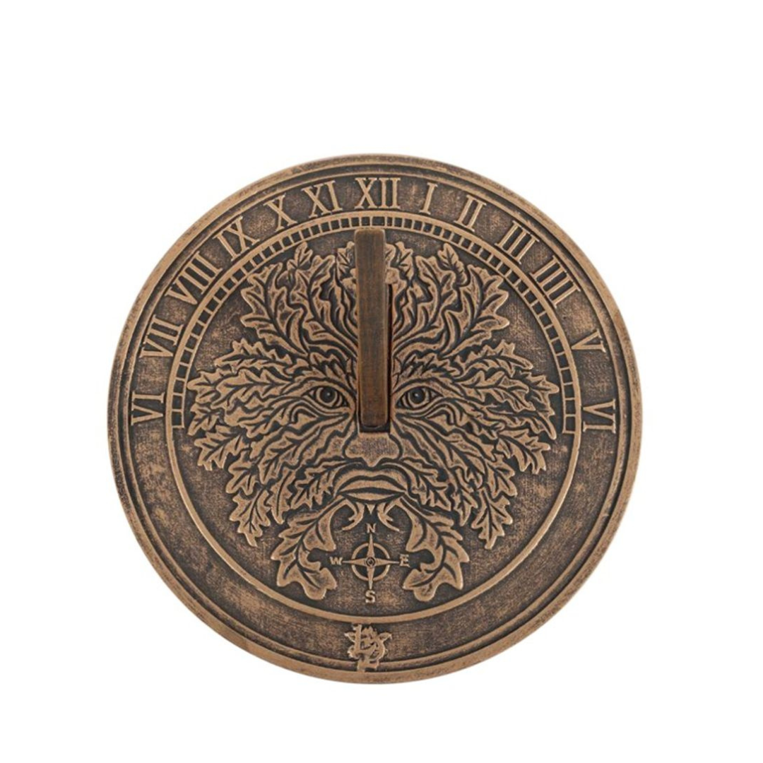 This terracotta sundial by Lisa Parker features a beautiful Green Man design that's brought to life with a rustic, bronze-like finish.