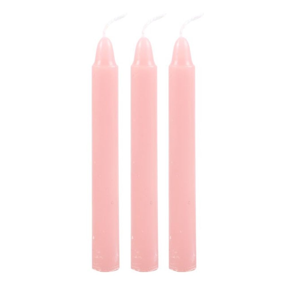 Each sliding box doubles as a candle holder and includes 3 unscented pink spell candles and instructions.