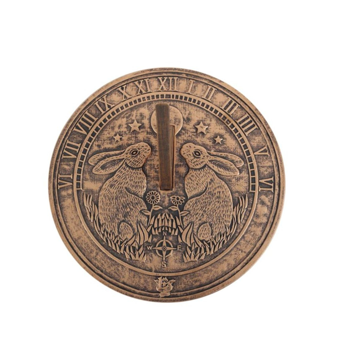 This terracotta sundial by Lisa Parker features a beautiful Moon Gazing Hare design that's brought to life with a rustic, bronze-like finish.