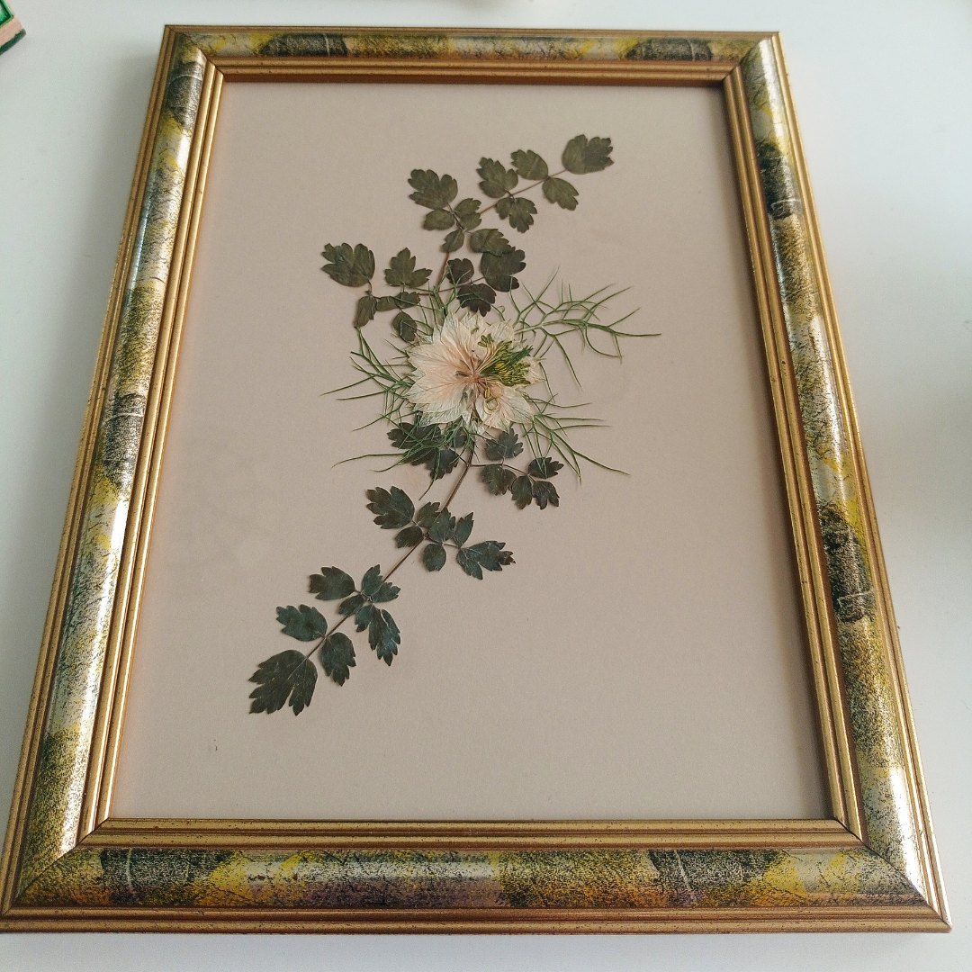80% of the time I curate second-hand preloved vintage frames for my artwork. Curating preloved vintage frames for my pressed flower artwork is a deliberate choice rooted in sustainability, aesthetic appeal, and a love for unique craftsmanship. Each vintage frame brings its own history and charm, enhancing the natural beauty of the pressed flowers and creating a harmonious and visually captivating piece. By recycling and up-cycling these frames, I contribute to a more sustainable lifestyle and reduce our carbon footprint as do you with your purchase. The superior craftsmanship and intricate details of vintage frames add a touch of elegance and sophistication that mass-produced frames simply cannot match. This not only preserves the historical and emotional value of the frames but also ensures that each artwork is truly one-of-a-kind.