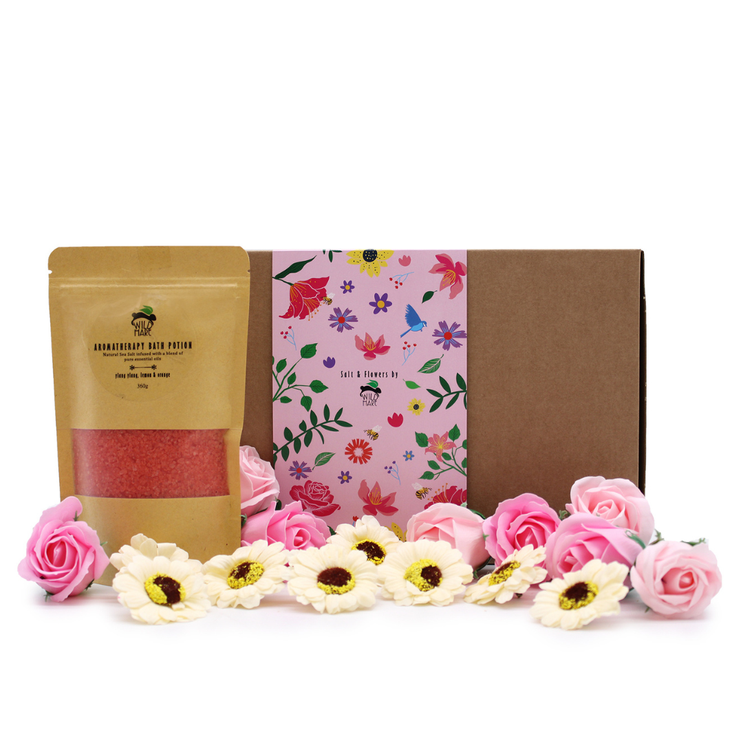 Turn your bathroom into a small spa every evening with this Wild Hare Salt & Flowers Set.