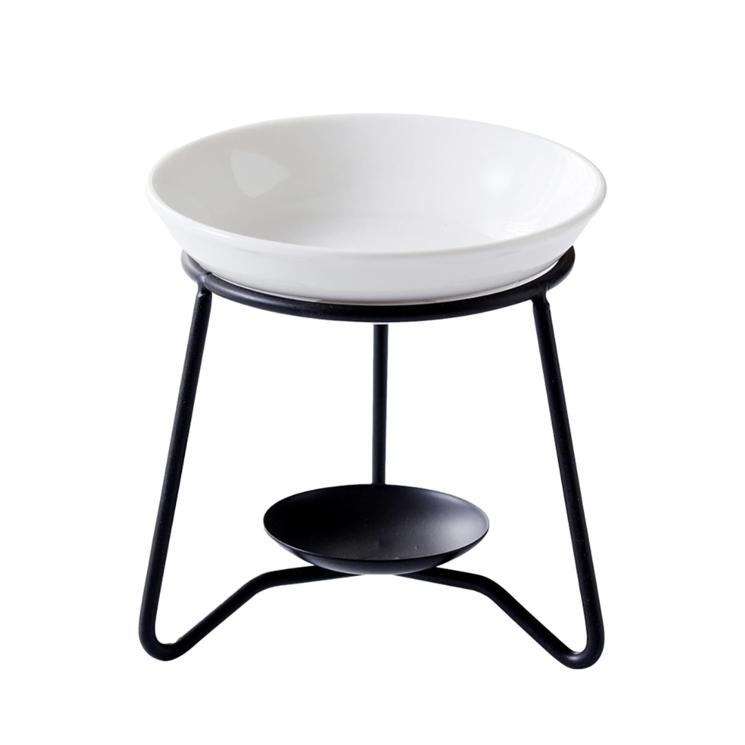 Introducing this sleek and stylish wax and oil burner, designed to elevate your space with elegance and functionality. Crafted with a minimalist approach, this burner features a striking black exterior that seamlessly blends into any decor style. Paired with a pristine white ceramic dish, it provides the perfect canvas for your favorite essential oils or wax melts.