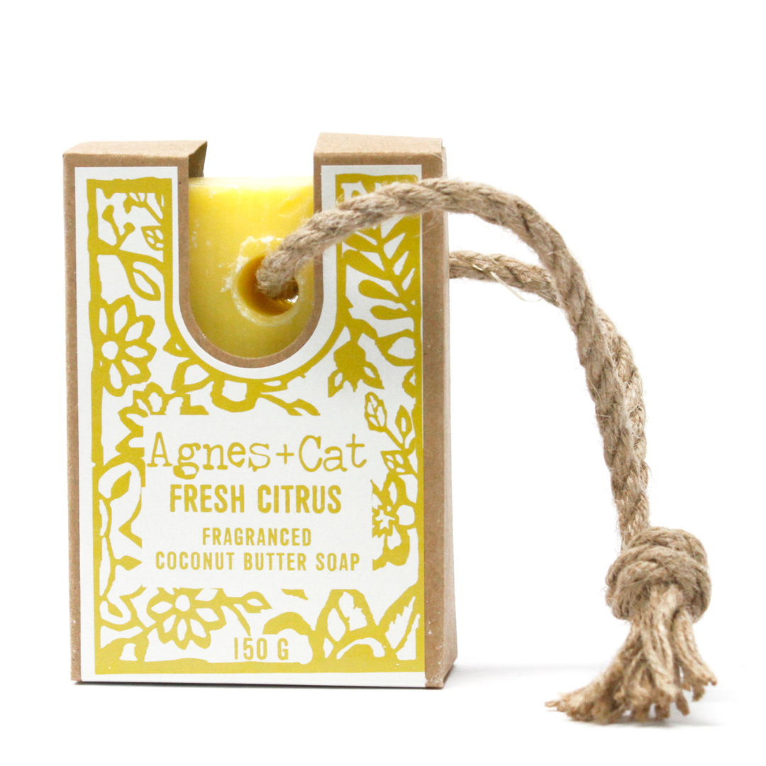 We've reinvented the idea and created a great solution for soap to hang in the shower or on the taps. The complex, intense scent and balanced formula of Agnes & Cat Handmade Artisan Soaps On a Rope will enhance your bathroom experience and impress your guests.