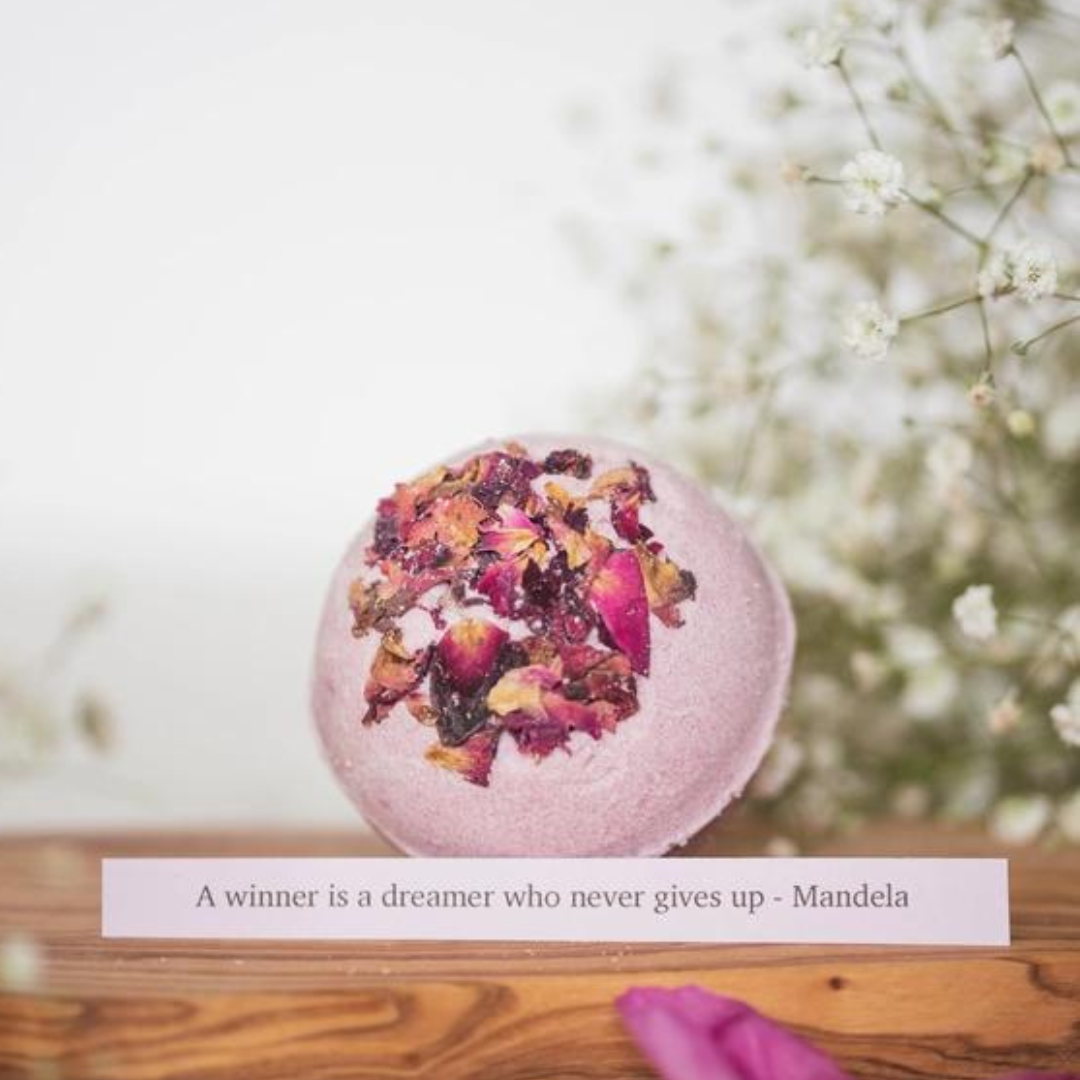 This package includes: 1x Secret Bath Bomb with a hidden message inside (120g), 1x Handmade Artisan Soap (120 g) and 1x Organic Bath Salt in glass tube (65 g).