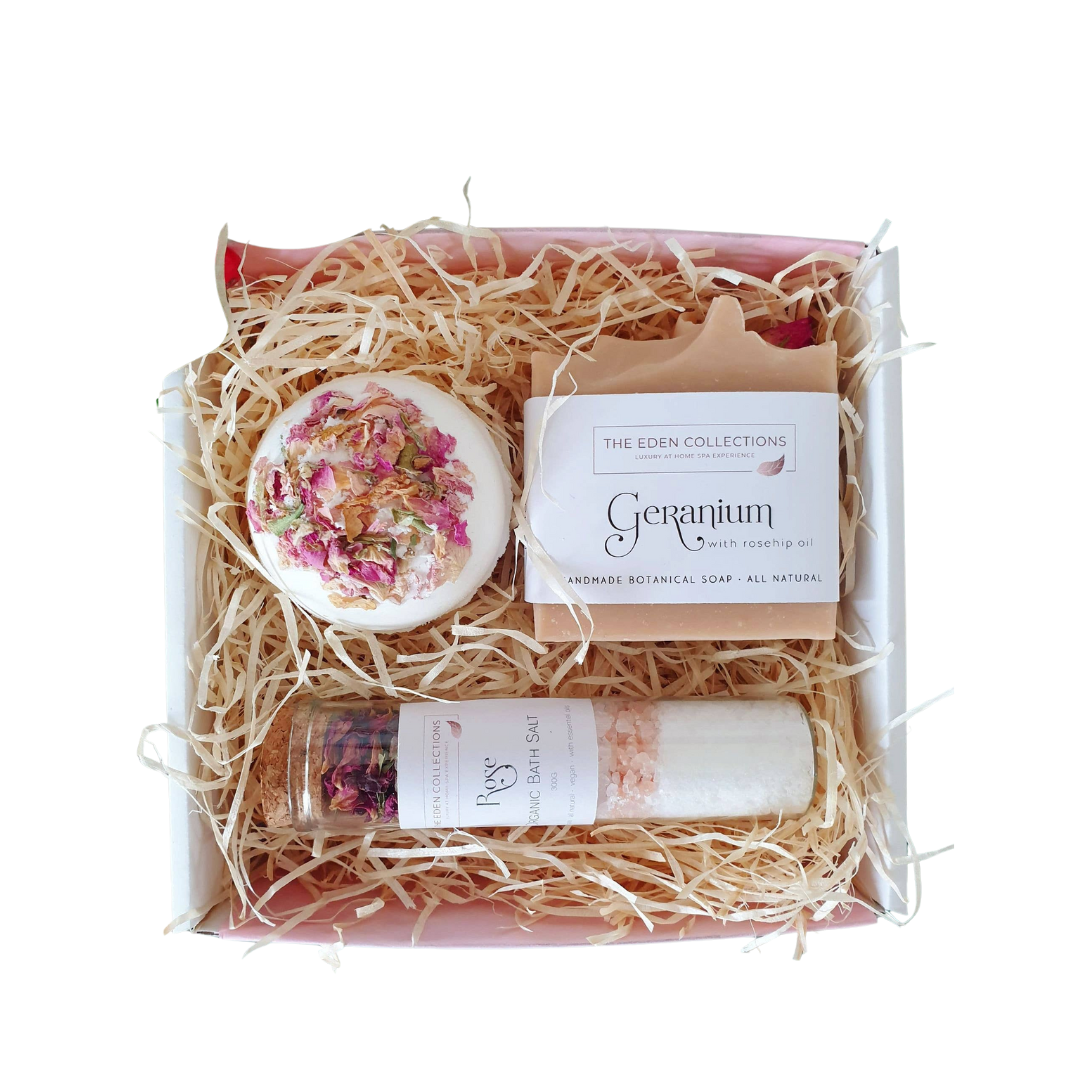Surprise your special someone with this carefully crafted Small Gift Set. Its 3 quality products—handmade botanical soap, Secret Bath Bomb, and 65g organic bath salt—create a perfect package for any occasion. Make their day with the perfect gift!